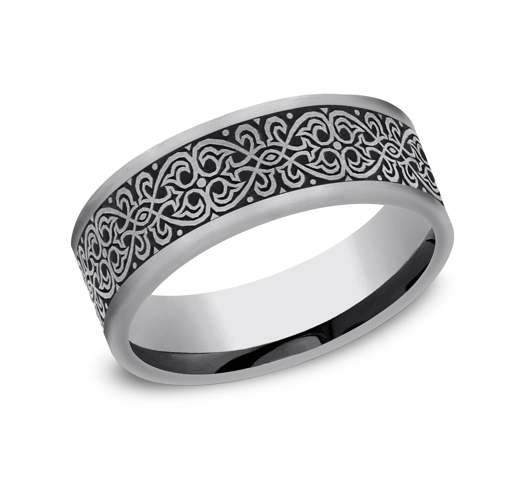 7mm, Comfort fit Tungsten Ottoman Knot pattern
