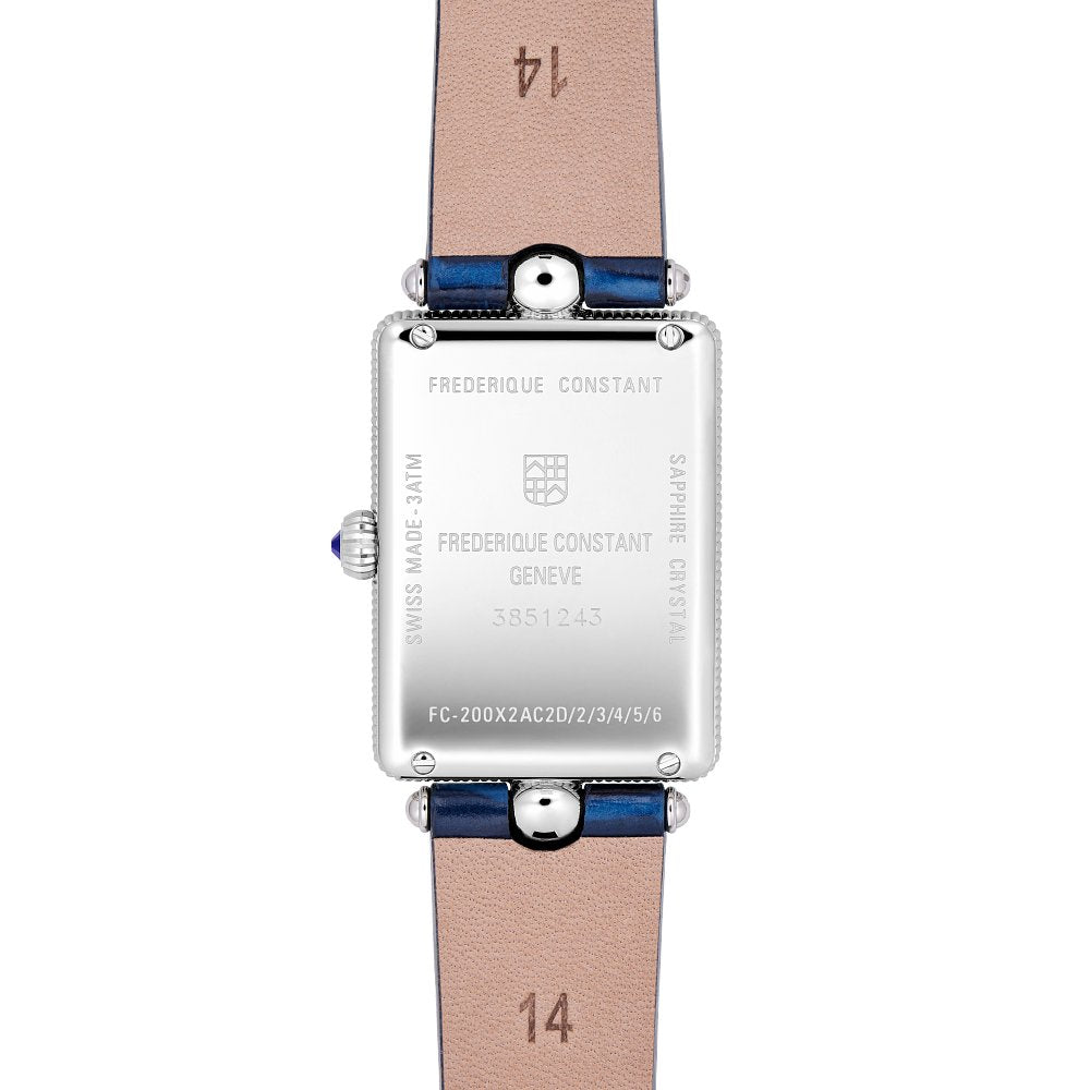 The quintessential definition of refined time. The Classics Art Déco Carrée, with its elegant rectangular polished shaped case and fluted case bands offers the ultimate elegance by bringing timeless sophistication among Frederique Constants collection. Inspired by the sophisticated and fashionable women of the late 1920s, this design cuts off from the mainstream and presents a different, vintage style.