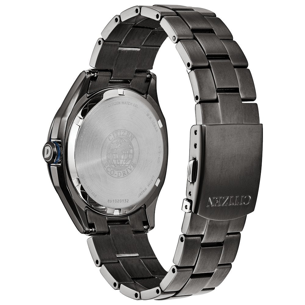 An edgy structure in a classic setting, this Drive from Citizen WDR watch features a deep gray ion-plated stainless steel case and bracelet with a denim blue dial and date. Featuring our Eco-Drive technology ? powered by light, any light. Never needs a battery. Caliber number J810.